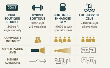 Hybrid facilities combining boutique zones within larger gyms see 40% higher lifetime member value (Fitness Business Association, December 2024)